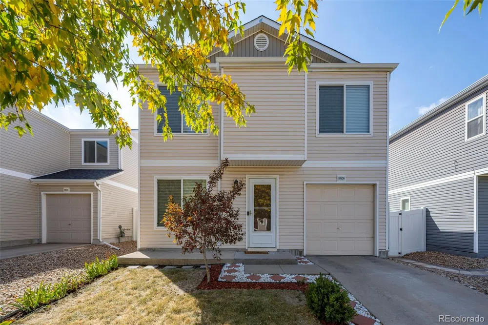 This two-story updated home offers low-maintenance living and is located just around the corner from major routes, shopping, parks, and trails. This home welcomes you into a bright and open family room on the main level, an eat-in kitchen with a stylish backsplash quartz counters, and stainless-steel appliances, and a convenient main-level laundry room. Upstairs, enjoy a loft, a primary bedroom with a walk-in closet and private upgraded bathroom featuring LVP flooring and a shower/tub combo. Two additional bedrooms and a full upgraded bathroom with tile flooring complete the upper level. Enjoy the fully fenced, low-maintenance outdoor space, thoughtfully designed with paving—ideal for entertaining guests and relaxing in privacy. Near I-70 and E-470 give easy access to amenities and is perfect for commuting to DIA, Denver, and surrounding areas! Don’t miss this amazing opportunity to own this low maintenance updated two-story home!