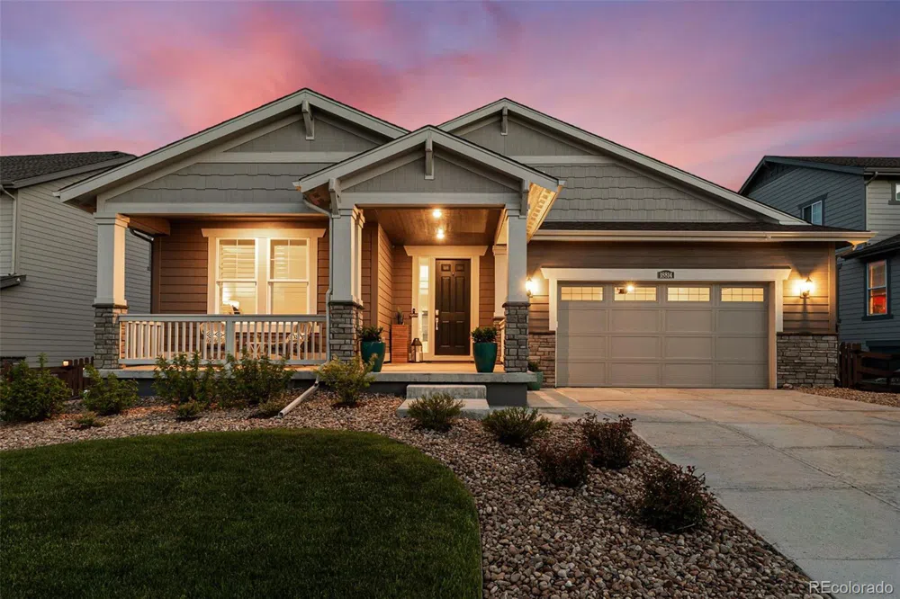Discover this stunning ranch-style home on a premier 9,132 sqft lot in Candelas. Boasting a walk-out basement, this home sits directly on open space to the south, offering breathtaking mountain views and abundant sunlight. The extensive south-facing windows perfectly frame the open space and mountain vistas. Enjoy spectacular sunsets and views from your spacious 21x11 covered deck or the backyard's natural gas fire pit, nestled in the beautifully landscaped yard. A back gate provides direct access to open space trails. Inside, this meticulously maintained home features four main-level bedrooms, engineered wood flooring, custom light fixtures, and a cozy living room gas fireplace. The chef's kitchen is a culinary dream with updated white cabinets, granite countertops, and stainless steel GE appliances, including an in-wall double oven and 5-burner gas cooktop. The large south-facing primary bedroom also features stunning views, a tray ceiling, mechanical blackout window shades, and a private bath with an 8-foot wide dual-head shower. The enormous primary walk-in closet conveniently connects to the laundry room. The full walk-out basement is a blank canvas ready for your imagination-ideal for a rec room, home theater, gym, wine cellar, additional bedrooms, bath and/or additional storage. The home also includes a 3-car garage with an epoxy floor and an 8-foot tall overhead door. This home is equipped with a comprehensive technology package, including a security system with four door sensors and a living room motion detector, multiple pre-wire internet access points, a Nest Thermostat, Schlage keyless entry, and two Wi-Fi boosters. Enjoy the fantastic amenities of the Candelas community, including scenic trails, numerous parks, refreshing pools, a fitness center, tennis and basketball courts. Additionally, benefit from the convenience of having Three Creeks K-8 school right within the neighborhood.