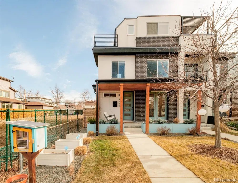 Sophisticated & Spacious Berkeley Duplex with Rooftop Retreat. Nestled in the heart of Berkeley, this stunning nearly new duplex blends modern luxury with timeless charm. Inside, freshly refinished solid oak floors and crisp new paint set the stage for an impeccably maintained home. The open-concept main level is designed for both entertaining and everyday living, featuring a chef’s kitchen outfitted with premium Wolf and Bosch appliances—perfect for crafting unforgettable meals. Relax in the inviting living room, where a striking gas fireplace creates a warm and cozy ambiance for movie nights. A dedicated main-level office offers the ideal work-from-home setup. Upstairs, three generously sized bedrooms include a lavish primary suite with a spa-inspired five-piece bath and an impressive walk-in closet. Outdoor living shines in this home—host summer gatherings in the private backyard or unwind under the stars on the expansive rooftop deck with breathtaking mountain views. With owned solar panels, enjoy the benefits of ultra-low electric bills. Situated just one block from the vibrant shops and dining of Berkeley’s famed Tennyson Street and only 3 blocks from Berkeley Lake, this home offers unparalleled access to the best of Northwest Denver. Quick access to downtown and I-70 makes city life and mountain getaways effortless. Style, comfort, and convenience come together perfectly in this exceptional home. Welcome home.