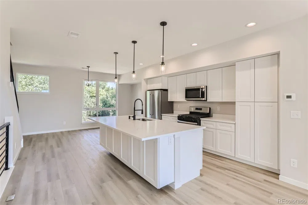 Welcome to this stunning BRAND NEW townhouse, with 1998 sq. ft of living space to provide contemporary & stylish living. This end unit boast a wrap around patio and wrap around balcony. The unit has a plethora of windows allowing our great Colorado sunshine to stream in and drench the unit with sunshine. Featuring 3 bedrooms and 3.5 baths, this townhouse is perfect for those seeking a spacious and comfortable home. The kitchen is equipped with Stainless Steel Kitchen Aid appliances, sleek quartz countertops, & ample storage space, a kitchen pantry, a huge dual sided kitchen island, making meal preparation a breeze. Open staircases and flowing rooms make this home ideal for entertaining guests or relaxing with family. The bedrooms are generously sized and offer plenty of natural light, creating a peaceful retreat for R&R. All bedrooms have ensuite bathrooms for convenience. The entry level bedroom has a lg. sliding glass door for immense light and can be used as a home office. Located in desirable Olde Town Arvada neighborhood, this townhouse offers convenience and accessibility to nearby amenities, including shopping, dining, & entertainment, This property is ready to welcome you home. Water, trash & HOA are included with rent. Portable Tenant Screening Reports (PTSR): 1) Applicant has the right to provide Corcoran Perry and Co a link with a PTSR that is not more than 30 days old, as defined in§ 38-12-902(2.5), Colorado Revised Statutes; and 2) if Applicant provides Corcoran Perry and Company with a PTSR, Corcoran Perry & CO is prohibited from: a) charging Applicant a rental application fee; or b) charging Applicant a fee for Corcoran Perry and Co to access or use the PTSR. Corcoran Perry and Company may request a statement from the prospective Tenant that there has not been a material change in the information in the screening report, including the prospective Tenant's name, address bankruptcy status, criminal history, since the report was generated.