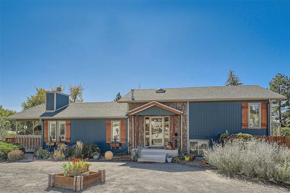 (HUGE PRICE REDUCTION) today !!!!!! Charming, modern updated cottage in the highly sought after neighborhood of Scenic/Huntington Heights ! 5 min. to Olde Town Arvada's Boutiques, Dining, entertainment and LIGHTRAIL! Walk 5 minutes West on Estes to our neighborhood Entrance to Majestic view Park and Nature Center, your kids and dogs will love. Classes, and activities for all to enjoy. Walking and bike trails. MOST BEAUTIFUL HOME IN ARVADA UNDER. $700K !!!! Tired of Cookie Cutter homes with no trees? This home has fondly been referenced as the "Tree House." Raised Garden beds, mature apple trees, Charming window boxes a (Greenhouse and a Bird sanctuary,) the owner worked on for years creating this warm peaceful setting. The Main floor boasts an amazing 22x13 vaulted great room with old Rock fireplace, New Plantation shutters and gorgeous dark stained flooring. Updated white kitchen with island overlooks the main floor living area. An amazing 24x8 ft. lovely covered deck is just off the great room for entertaining. The upper level (5 short stairs) has an updated full bath with Navy Subway tiles. Also upstairs is the Primary bedroom with Sliding glass doors to a private deck with Mountain views. Another large 18x9 bedroom up. The Lower level lovely walk out family room with sliding door access to backyard, a faux brick wall, newly installed large picture window, and recessed lighting. Completing the lower level is a large laundry/bath, bedroom and craft area with access to 2-car attached garage. Don't miss this rare opportunity to live in Highly sought after neighborhood surrounded by Million Dollar Homes. DON'T SETTLE FOR ORDINARY. OPEN HOUSE 11-2 PM 10/27