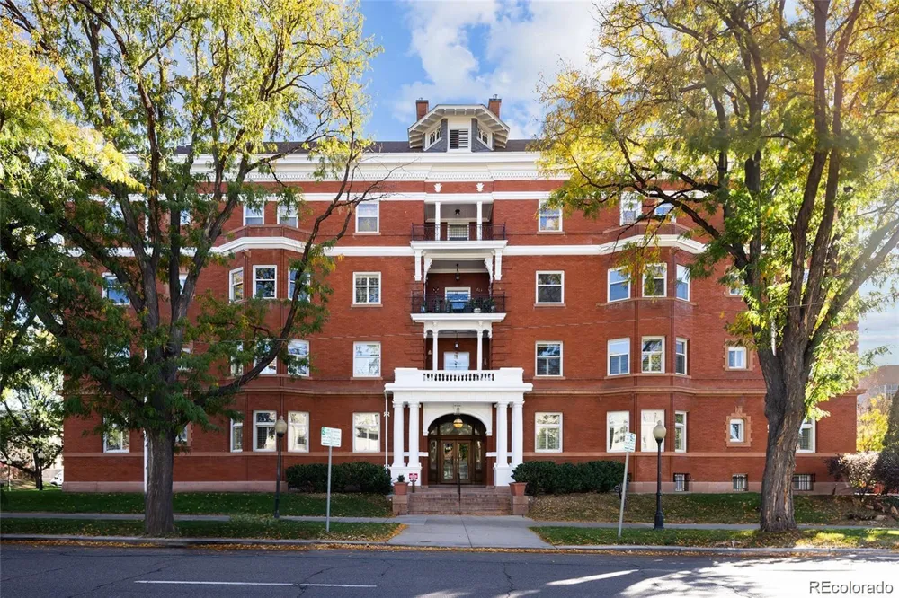Uptown living at its finest in one of the most unique and beautiful buildings in Denver! An iconic piece of Denver history, the Perrenoud was built in 1901 by the 3 daughters of John Perrenoud and designed by Denver architect Frank Snell. You will be stunned by the grand foyer with rotunda, Italian marble, plasterwork and lovely stained glass. Wait till you see Colorado’s only working birdcage passenger elevator! This home is elegant and full of light from the stunning windows. Notice the many original features throughout. This lovely home features 2 bedrooms and 2 baths with a bonus study/den that could be easily converted to a third bedroom. The primary bedroom features a beautiful balcony overlooking downtown Denver. Mitsubishi mini-splits were recently added to the bedroom & the dining room. Don't miss the IN UNIT laundry room with a full size washer & dryer & a large sink. The quarter-sawn oak flooring is fabulous & the bedroom floors have recently been refinished. The unit has new elegant paint throughout. The original windows have had the cords lovingly restrung. And a new dishwasher was added. Delight in the door transoms, custom-milled baseboards & crown molding. Recent building improvements include a new boiler, roof & standpipe, & secured entry system. The entire building exterior has been repainted. Numerous building amenities include a gated courtyard garden, fitness facility (in the former ballroom), wine cellar, enclosed bike storage room, private storage rooms for each unit, & owner’s garage parking. Be sure to read the history of the building in the basement museum. HOA offers extraordinary value, including gas, heat, water, trash, composting, recycling, sewer, capital reserves, building & grounds maintenance, & snow removal. Walk to City Park, Cheesman Park & downtown. The neighborhood features a local butcher/market, restaurants & a wine shop. Located in the Swallow Hill Historic District.
