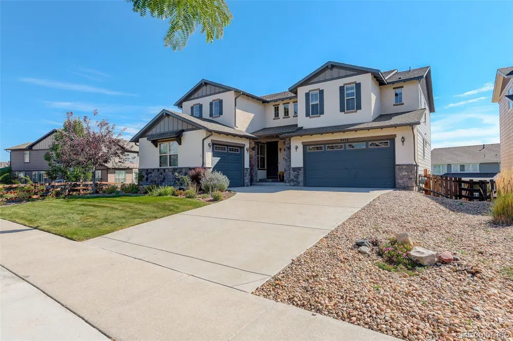 Discover the epitome of luxury living in this exquisite Meritage home located in the prestigious Leyden Rock community! This meticulously upgraded residence features a state-of-the-art gourmet kitchen equipped with top-of-the-line appliances, granite countertops, and elegant crown molding. The main level exudes sophistication with 9' doorways, 18' ceilings, and luxurious hardwood flooring. A guest bedroom, 3/4 bath, a study, large walk-in pantry and a formal dining room to host your friends and family. The bright kitchen nook leads you the beautiful extended covered deck. Journey upstairs to find the beautiful balcony overlooking the family room and kitchen. Fresh coat of interior paint enhances the vibrant walls. A spacious loft which has been converted into an office and can easily be converted back. Oversized master suite, complemented by a lavish 5 piece master bath boasting quartz countertops, custom tile shower, and a garden tub. 2 good size bedroom with joined bath. The 1700 square ft walk-out basement offers endless possibilities with 9' ceilings and pre-plumbing. Outside, the stucco and stone exterior exudes curb appeal. Revel in breathtaking views of the Denver skyline from the eastside of the house and unwind on the extended covered deck, complete with a convenient gas line for grilling. The spacious yard features raised garden beds, perfect for green thumbs. Located just a block away from the community clubhouse, pool, playground, and trails, this home offers the perfect blend of luxury and convenience. Your dream home is just a move away!