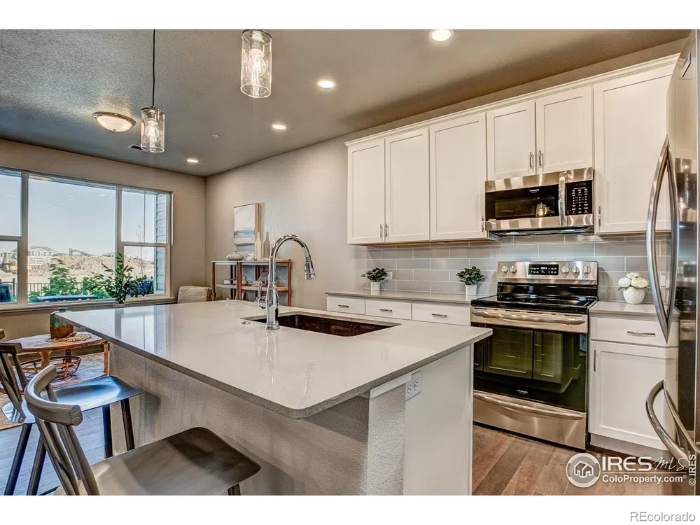 Move in ready! Grab the opportunity to own one of the last few remaining Cascade plans in Northfield. The Flats at Northfield is a LEED gold certified community by Landmark Homes, where every building has solar energy! Nestled in the heart of vibrant Fort Collins,& minutes to CSU, the Cascade plan offers a 1 car attached garage, ranch style living w/ no stairs! Bright, open floor plan, dining nook, gorgeous quartz kitchen island, flex space to curl up w/ a good book, oversized primary bedroom, primary bath w/ separate dual vanity, walk-in closet, covered & fenced porch, & large windows allowing an abundance of natural light. Come see the exceptional luxury interior features: high efficiency furnace, tankless water heater, & gorgeous, designer selected "Luxmark" standard finishes, quartz counters, tile surrounds, stainless appliances, tile floors in laundry & bathrooms & 1 car garage included. Enjoy quality craftsmanship & attainability, all located in a community loaded w/ amenities & conveniently located close to downtown Fort Collins, CSU & a future trail to link to the Poudre River Trail system. Come see what Northfield is all about & schedule a private tour. Model located at 827 SCHLAGEL STREET #1, FORT COLLINS, CO. Quality condominiums built by Landmark Homes, Northern Colorado's leading condo and townhome builder! Completion date may vary, call 970-682-7192 for construction updates.